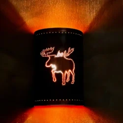 The Rustic Copper Moose Wall Sconce features a custom hand-punched design crafted from natural copper and finished with a rich, custom bronze patina. Made in the USA by skilled artisans, this Forest Animal-inspired wall sconce adds warm ambiance and authentic rustic character to cabins, ranch homes, and mountain style interiors.