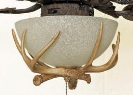 With weathered iron housing and lodge pine blades, the Antler Light Kit turns any room into a rustic retreat. A 52” blade sweep offers 5,798 CFM (cubic feet of air per minute) for a comfortable breeze. The look of rough hewn pine logs bring the Mountain style to life.