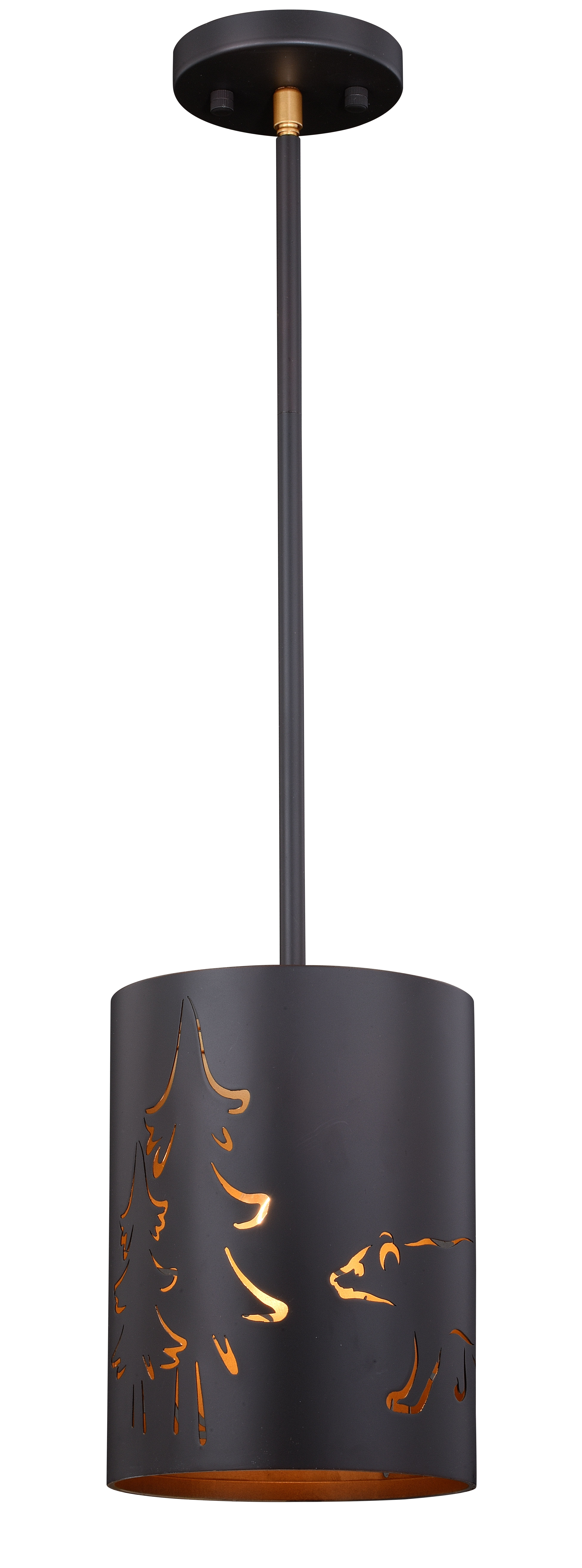 This Katmai Pendant inspires with the majesty of the great outdoors featuring pine trees and bears, equally fitting in a modern or rustic theme.