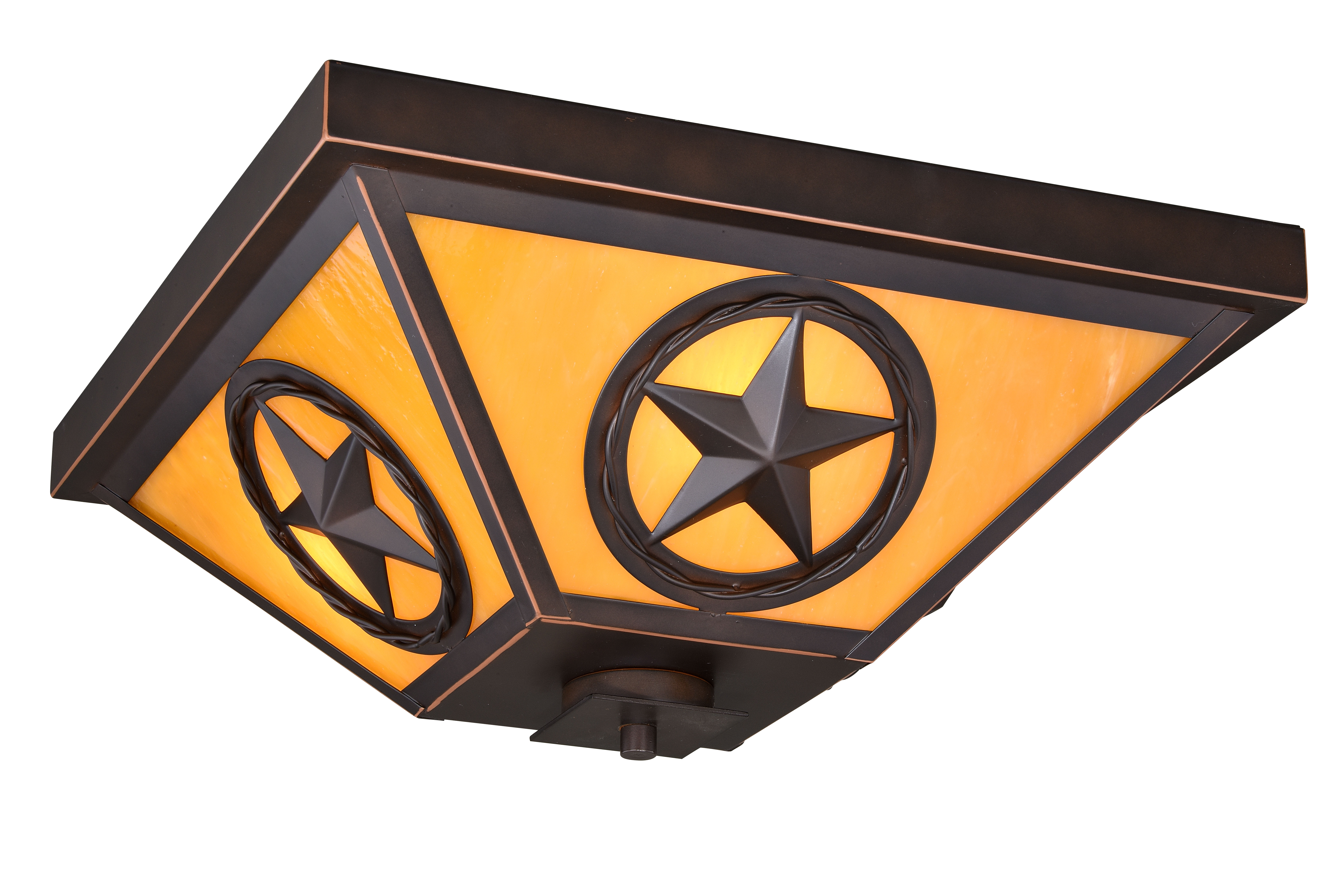 This Ranger Ceiling Light imbues the spirit of the Old West, equally fitting in a ranch or western theme. Honey Opal glass provides a warm ambiance for your outdoor spaces. This fixture is flush mounted for maximum head clearance.